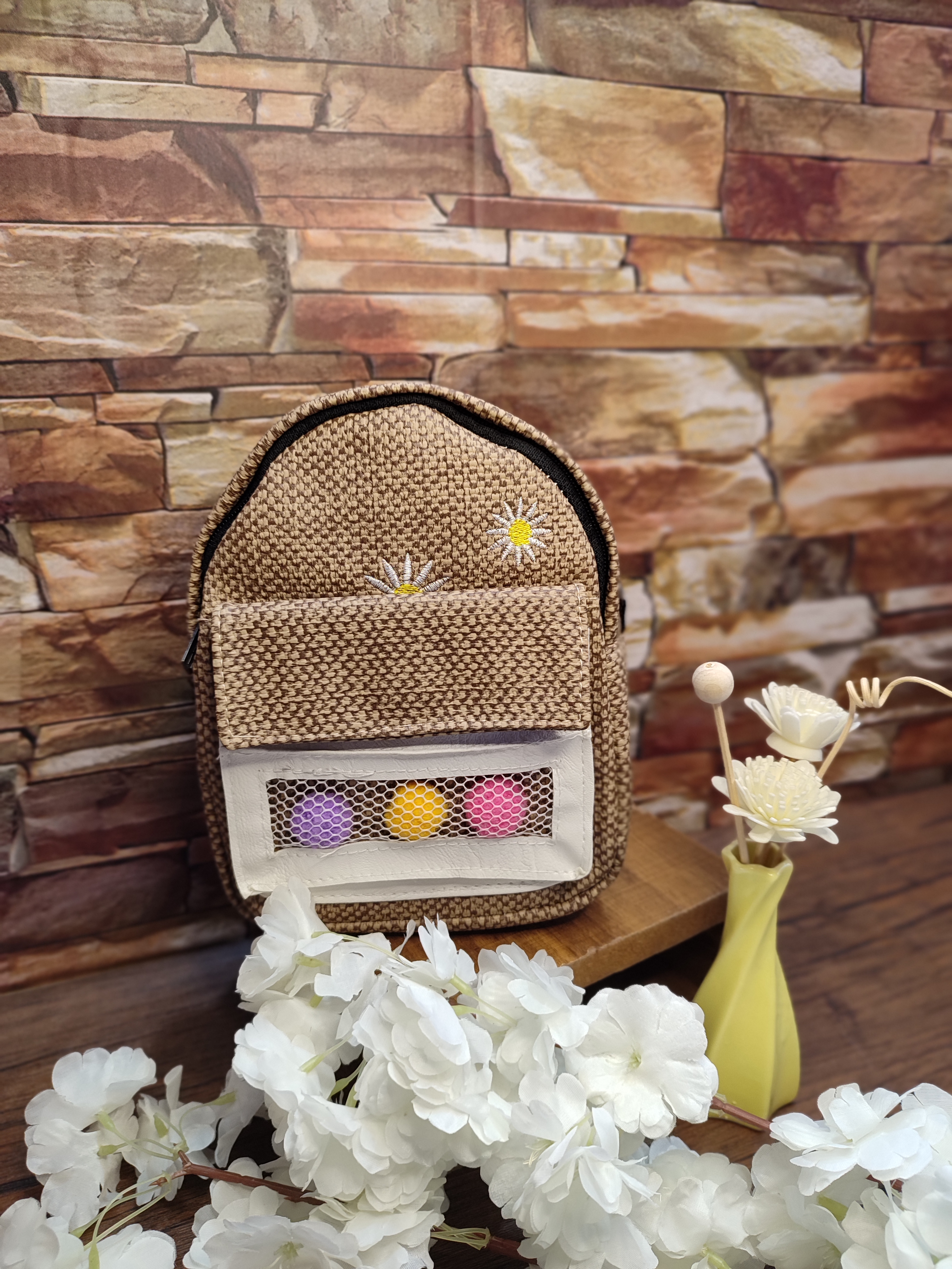 کوله پشتی زنانه فانتزی پارچه کنفی کد ۱۹